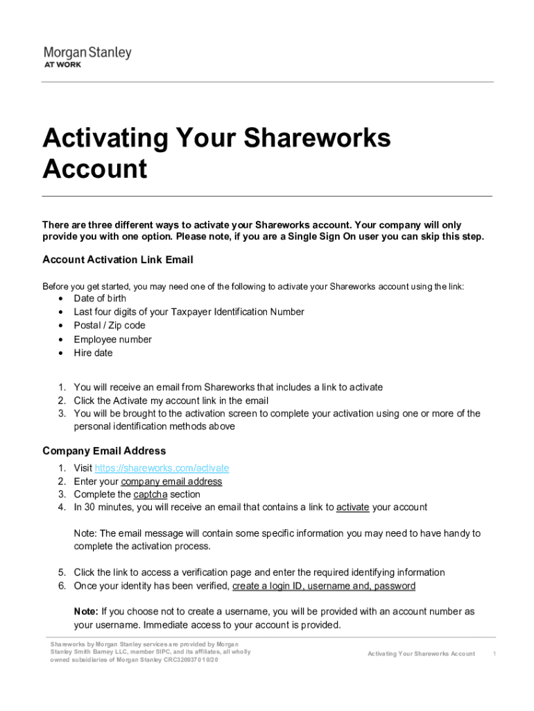 Activating Your Share works Account There are three different ways to activate your Share works account. Your company will only provide you with one option. Please note, if you are a Single Sign On