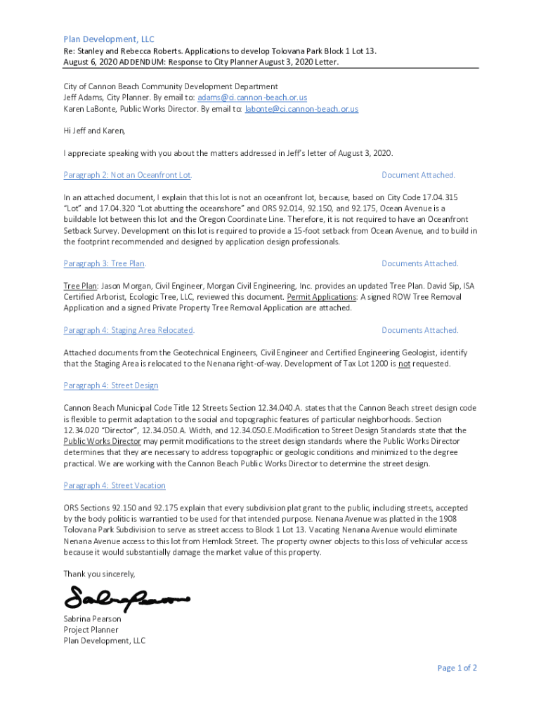 Get the free Plan Development, LLC - City of Cannon Beach