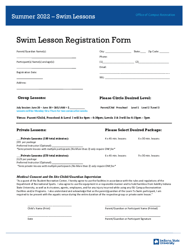 Summer 2022 Swim LessonsOffice of Campus Recreations Lesson Registration Form