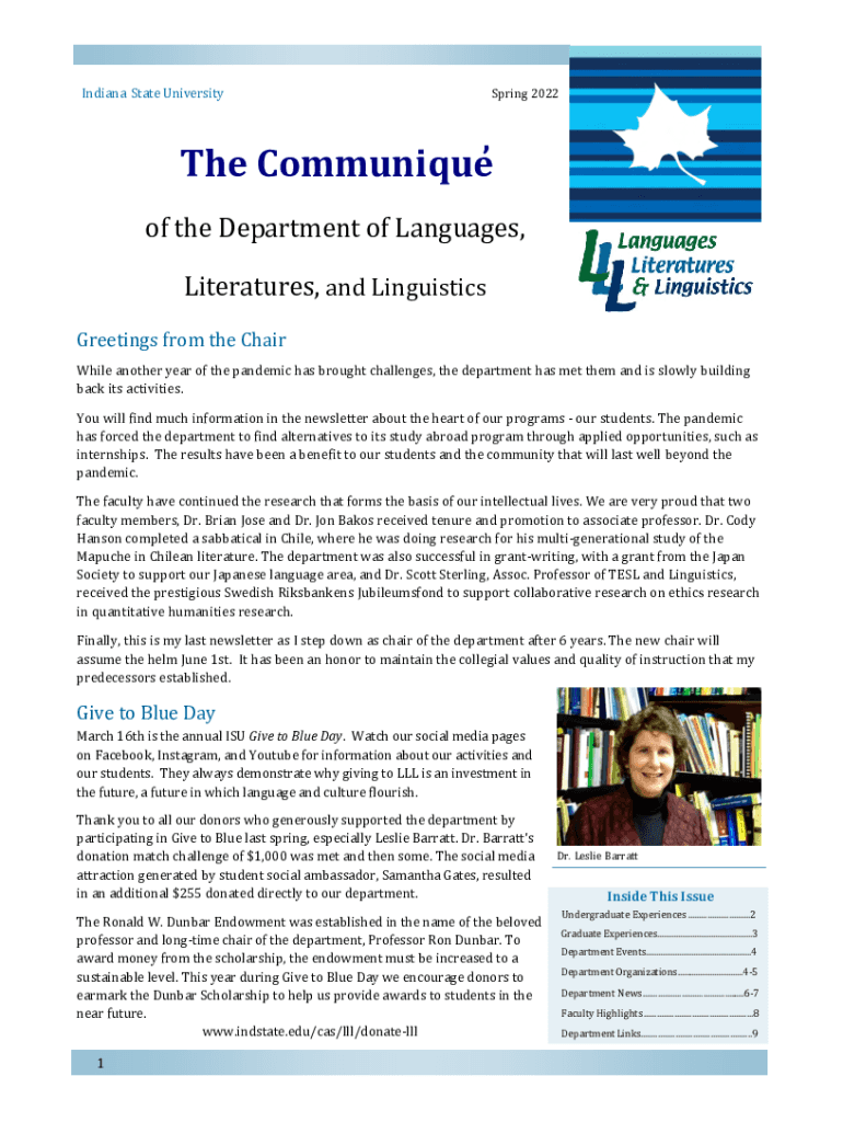 Literatures, and LinguisticsGreetings from the Erewhile another year of the pandemic has brought challenges, the