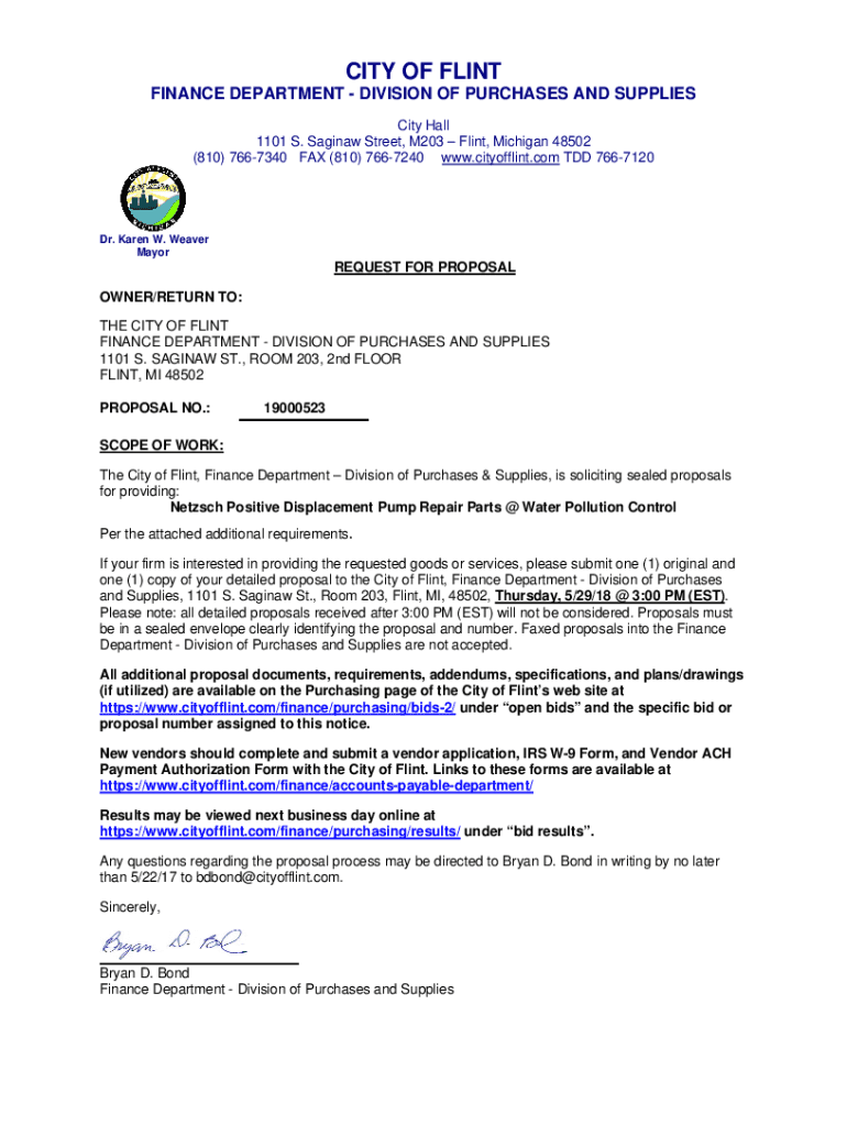 CITY OF FLINT FINANCE DEPARTMENT DIVISION OF PURCHASES AND SUPPLIES City Hall 1101 S. Saginaw Street, M203 Flint, Michigan 48502 (810) 7667340 FAX (810) 7667240 www.cityofflint.com TDD 7667120Dr.