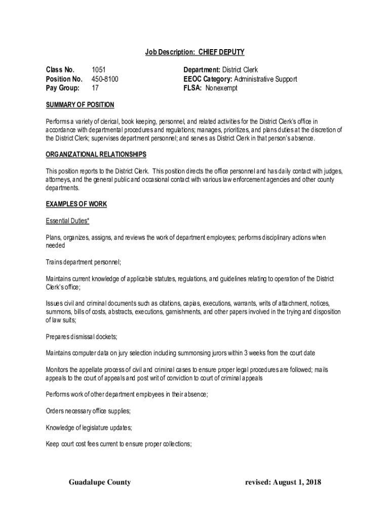 Get the free co.guadalupe.tx.ushrjobsJob Description: CHIEF DEPUTY Class No. Department: EEOC ...
