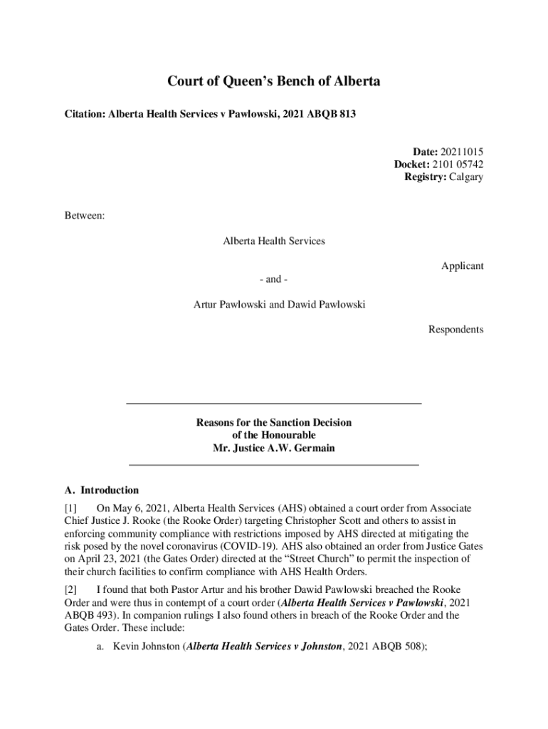 Citation: Alberta Health Services v Wazowski, 2021 ABB 813Date: 20211015