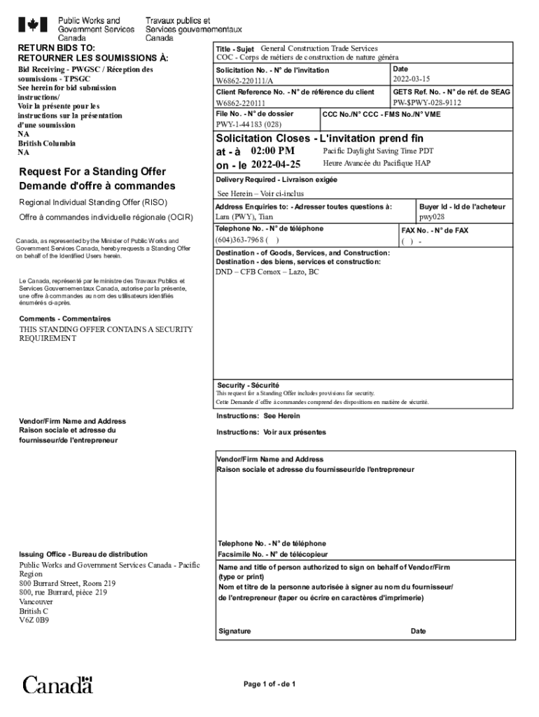Get the free buyandsell.gc.ca cds publicRFSO-ENG W6862-220111 General Construction Trade Services...