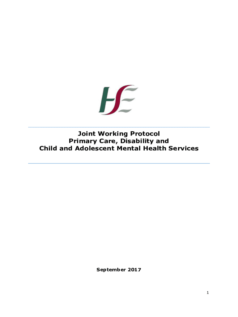 Joint Working Protocol Primary Care, Disability and Child and Adolescent Mental Health Services September 20171Index Summary of Recommendations3Background51.6 Members of the Working Group61.7 Abbreviations62.0Policy