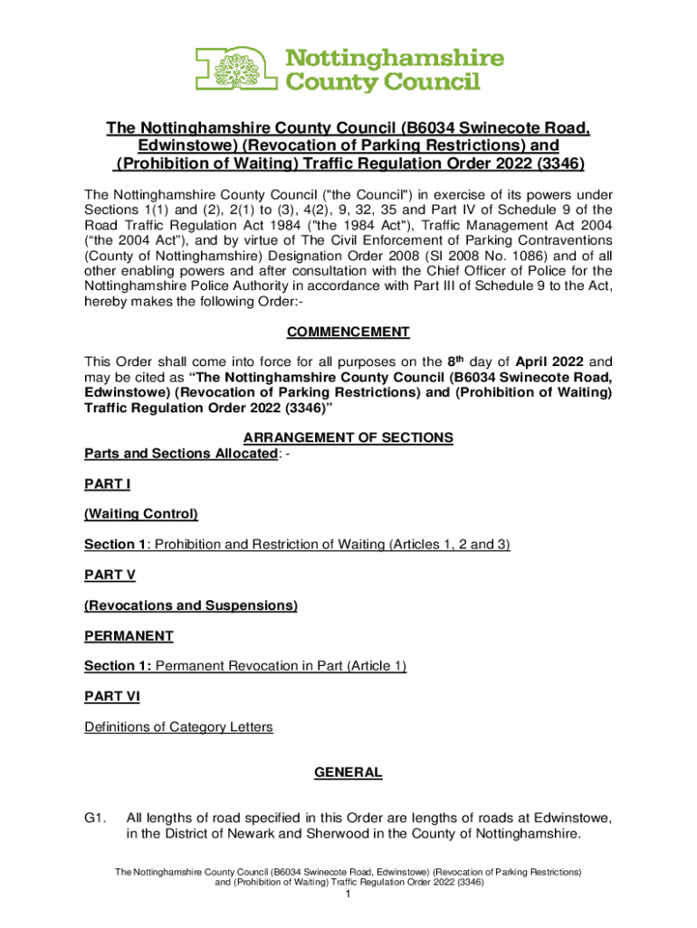The Nottingham shire County Council (B6034 Swine cote Road, Edwinstowe) (Revocation of Parking Restrictions) and (Prohibition of Waiting) Traffic Regulation Order 2022 (3346) The Nottingham shire