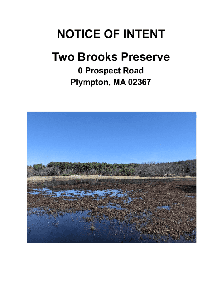 NOTICE OF INTENT Two Brooks Preserve 0 Prospect Road Hampton, MA 02367TABLE OF CONTENTS Notice of Intent Wetland Fee Transmittal Form Project Narrative Alternatives Analysis Maps: Project LOCUS Mass