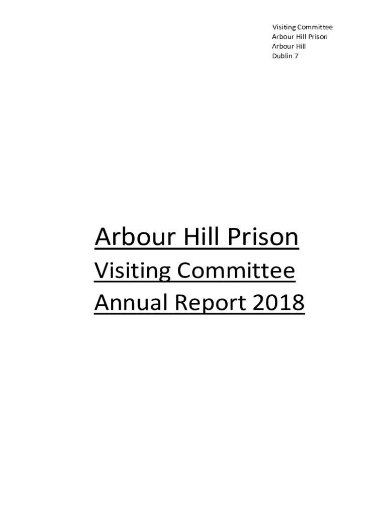 Visiting Committee Barbour Hill Prison Barbour Hill Dublin 7Arbour Hill PrisonVisiting Committee Annual Report 2018A Chart, Herewith is the Annual Report for the Visiting Committee for Barbour Hill