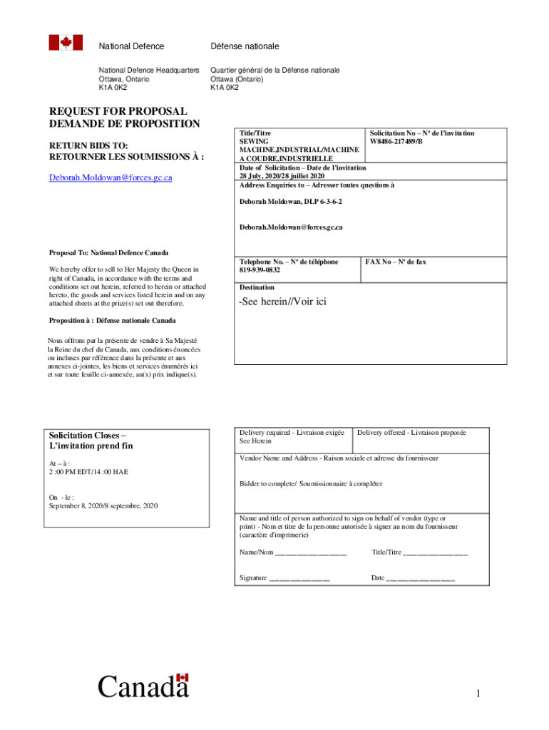 National DefenceDfense nationaleNational Defense Headquarters Ottawa, Ontario K1A 0K2Quartier gnarl DE la Defense national Ottawa (Ontario) K1A 0K2REQUEST FOR PROPOSAL DEMAND DE PROPOSITION RETURN