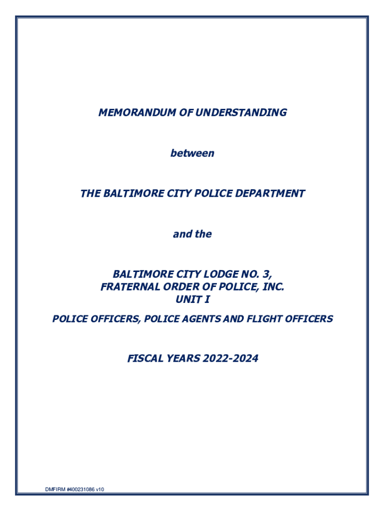 MEMORANDUM OF UNDERSTANDINGbetweenTHE BALTIMORE CITY POLICE DEPARTMENT and Baltimore CITY LODGE NO. 3,