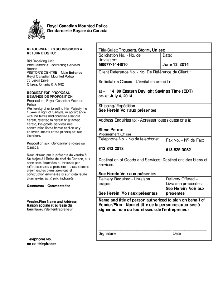 Gendarmerie Royale du CanadaRETOURNER LES COMMISSIONS A: