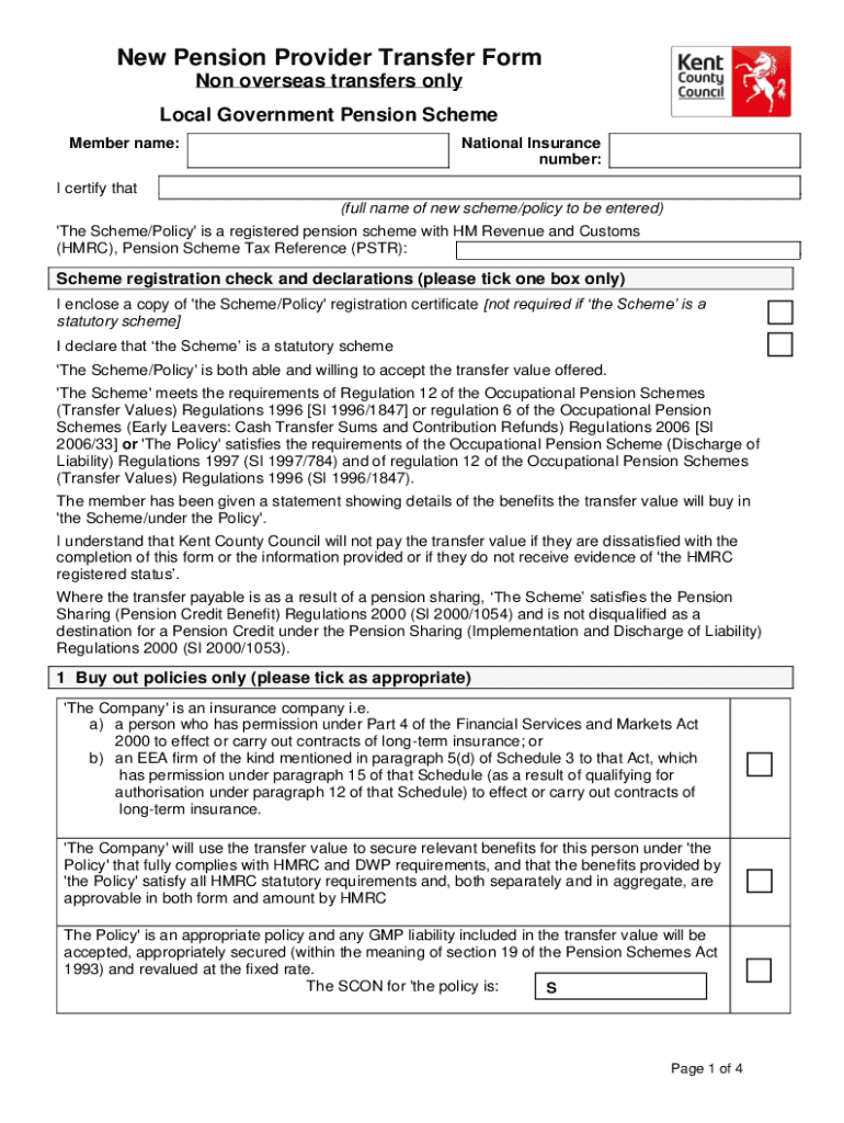 New Pension Provider Transfer Form Non-overseas transfers only Local Government Pension Scheme Member name:National Insurance number:I certify that (full name of new scheme/policy to be entered) \'The