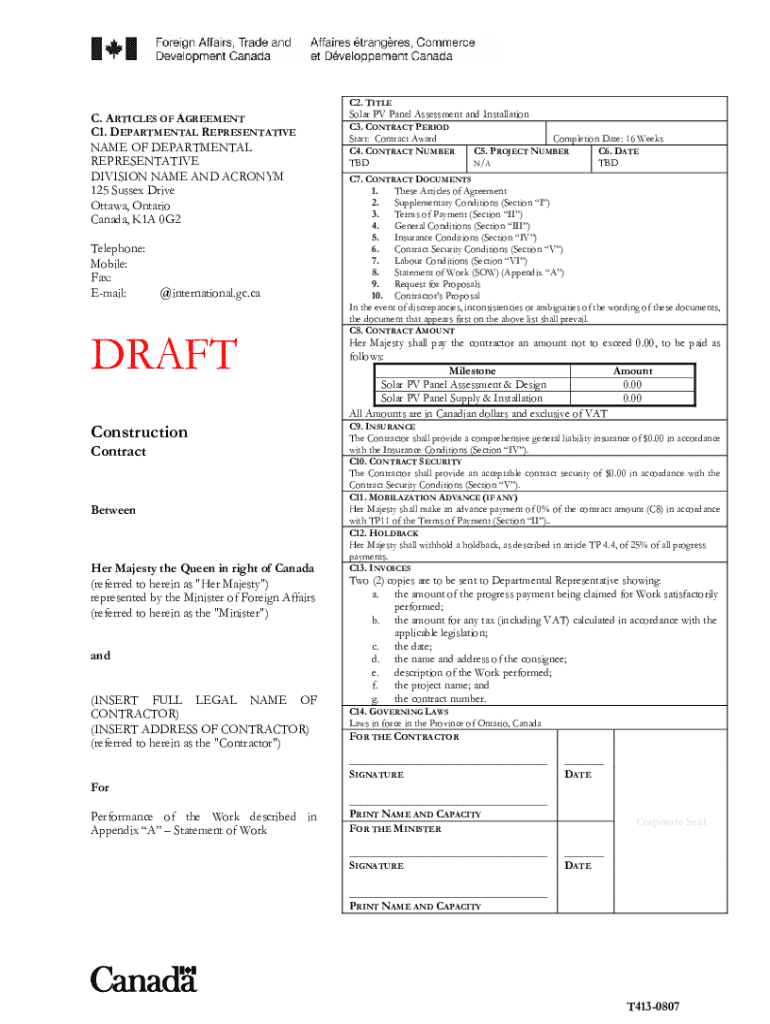 Get the free buyandsell.gc.cacdspublicC. ARTICLES OF AGREEMENT C2. TITLE C3. DATE C1. D R TBD ...