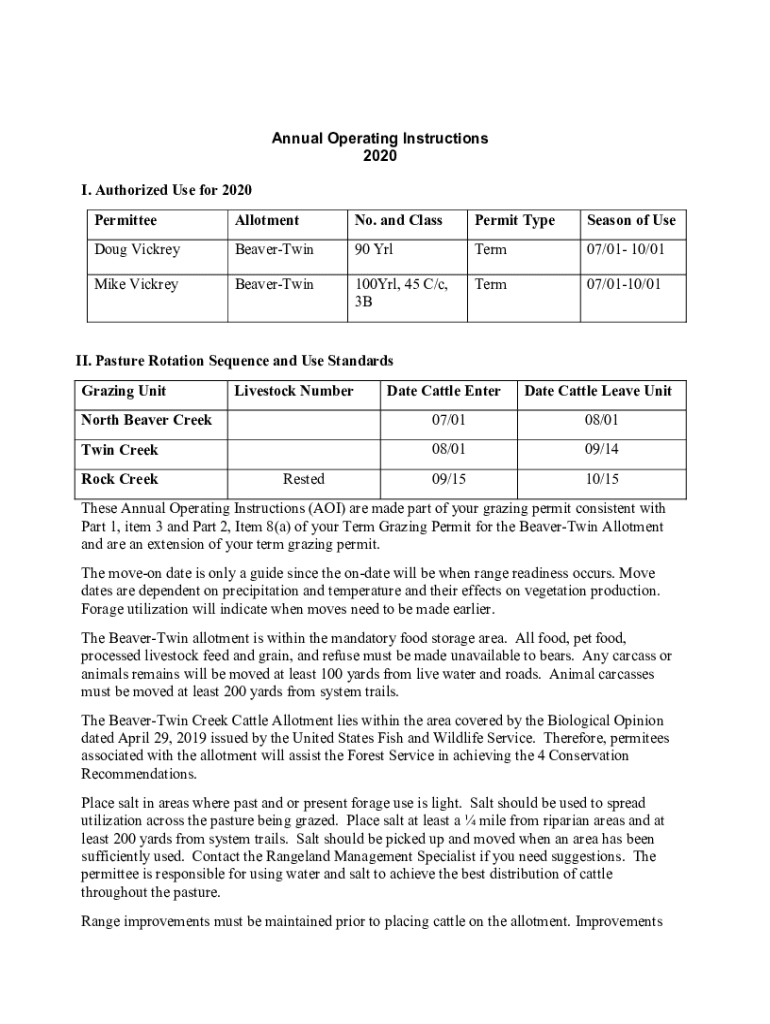 Get the free Annual Operating Instructions 2020 - Forest Service