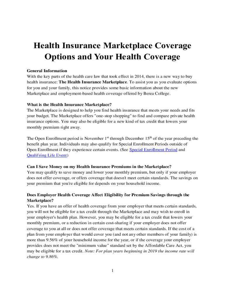 Health Insurance Marketplace Coverage Options and Your Health Coverage General Information With the key parts of the health care law that took effect in 2014, there is a new way to buy health insurance: