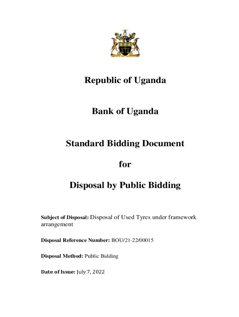 Any entity or individual wishing to bid on the disposal of used tyres is required to file the standard bidding document.