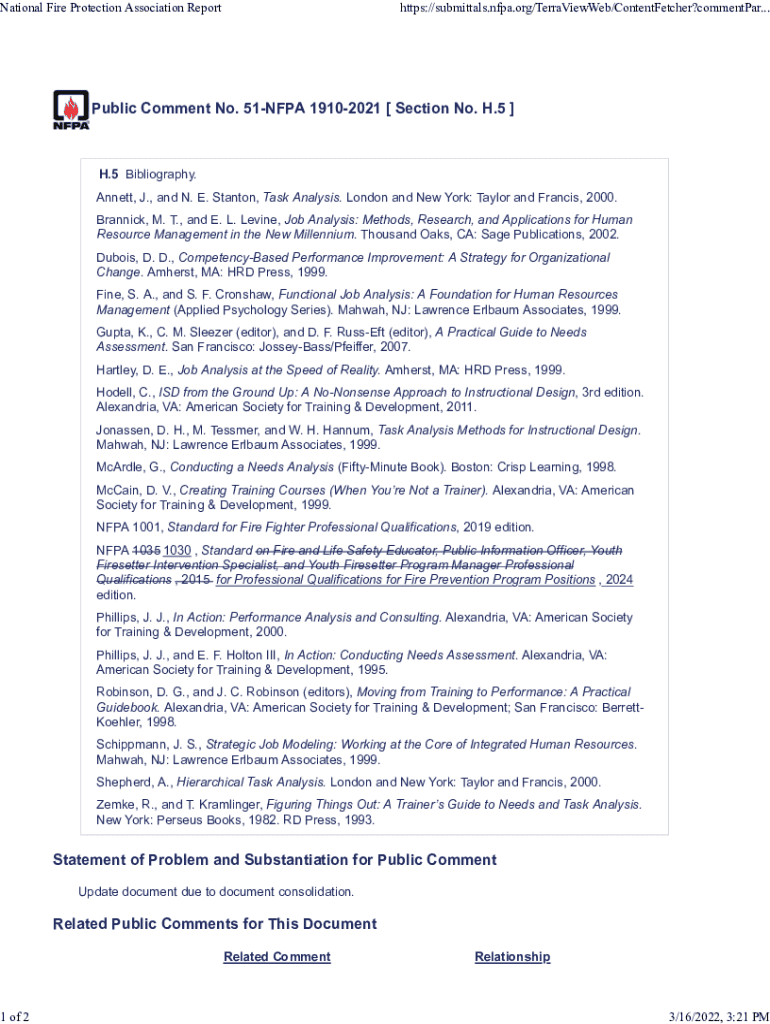 National Fire Protection Association Report1 of 2https://submittals.nfpa.org/TerraViewWeb/ContentFetcher?commentPar... Public Comment No. 51NFPA 19102021 [Section No. H.5]H.5 Bibliography. Annette,
