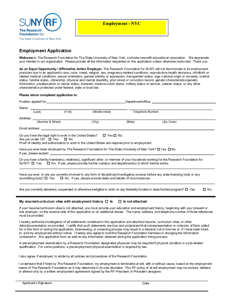 Employment Application Welcome to The Research Foundation for The State University of New York, a private nonprofit educational corporation. We appreciate your interest in our organization. Please