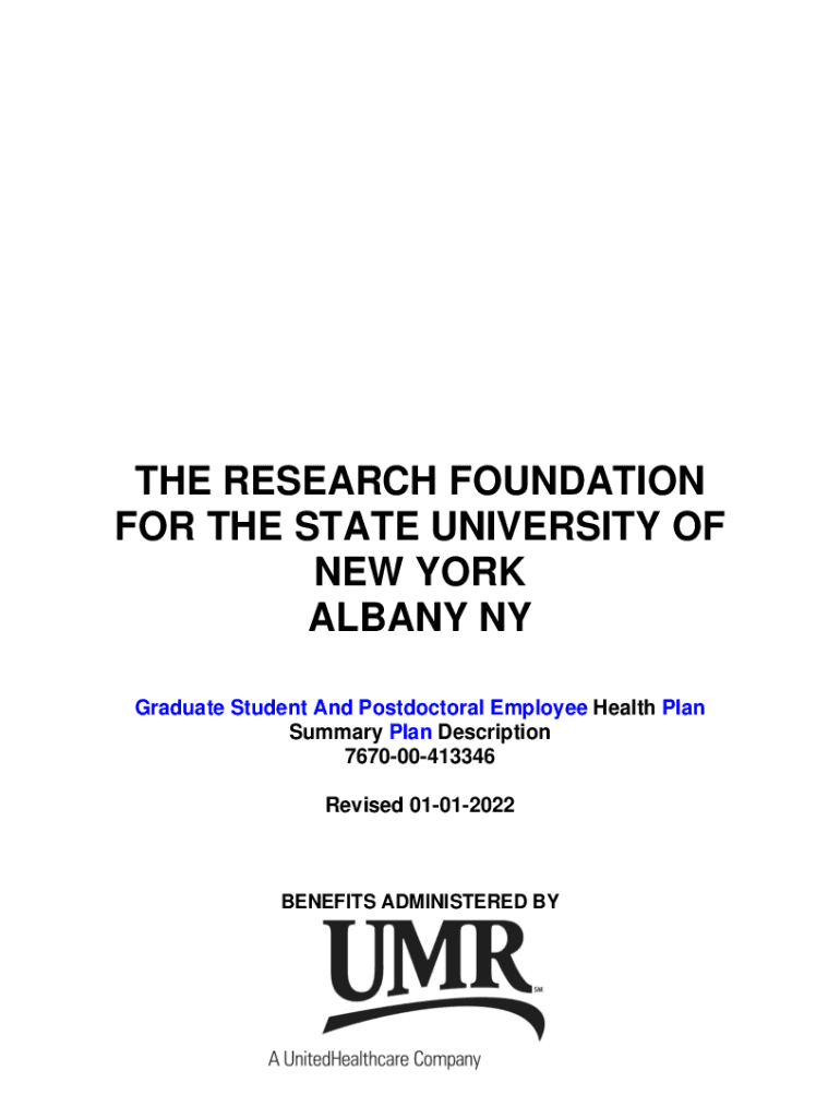 THE RESEARCH FOUNDATION FOR THE STATE UNIVERSITY OF NEW YORK ALBANY NY Graduate Student And Postdoctoral Employee Health Plan Summary Plan Description 767000413346 Revised 01012022BENEFITS ADMINISTERED