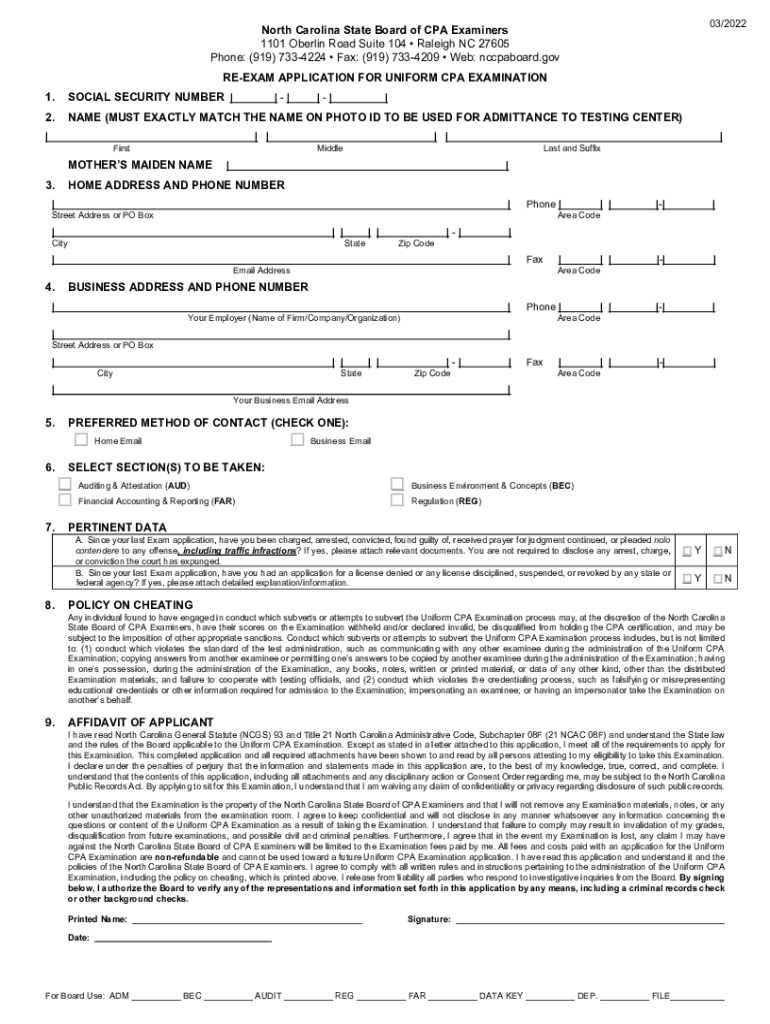 03/2022North Carolina State Board of CPA Examiners