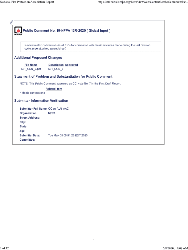 HTTPS://submittals.nfpa.org/TerraViewWeb/ContentFetcher?commentPar... National Fire Protection Association Report1 of 32Public Comment No. 19NFPA 13R2020 [Global Input]Review metric conversions in