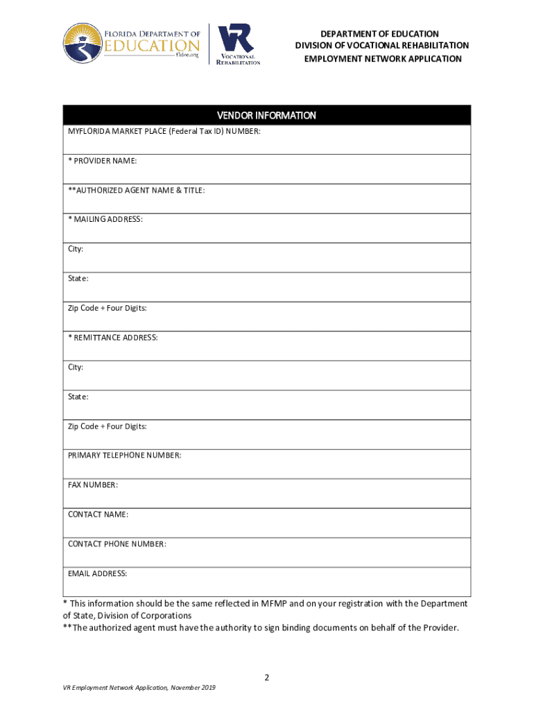 Dear Applicant, Thank you for your interest in becoming a Department of Education, Division of Vocational Rehabilitation (DVR) Employment Network Provider (EN). In order to be eligible for registration,