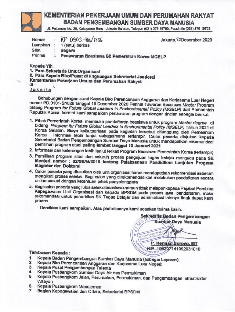 November 30, 2020, H.E. Ir. Mocha mad Kabuki Hadimuljono Minister of Public Works and Public Housing Republic of IndonesiaYour Excellency, On behalf of the Ministry of Environment of the Republic