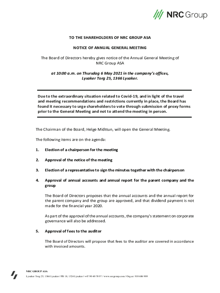 Get the free nrcgroup.commediajkhpfgwaTO THE SHAREHOLDERS OF NRC GROUP ASA NOTICE OF ANNUAL GENER...