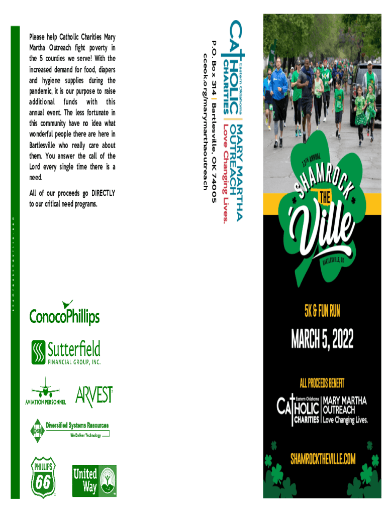 M o c. E l l i v e h t k c o r m a h SP. O. Box 314 | Bartlesville, OK 74005All of our proceeds go DIRECTLY to our critical need programs.cceok.org/marymarthaoutreachPlease help Catholic Charities