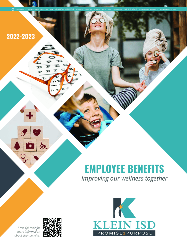 ELIGIBILITYENROLLMENT OPTIONSEAPFINANCIAL WELLNESSMEDICALDENTALVISIONHSAFSADISABILITYLIFE AND AD&DADDITIONAL BENEFITSRETIREMENT PLANS20222023EMPLOYEE BENEFITSImproving our wellness together Scan QR