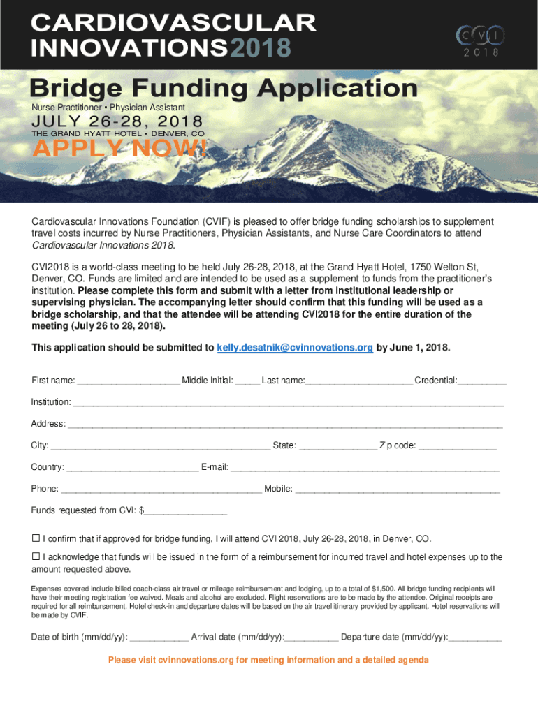 Nurse Practitioner Physician AssistantJULY 2628, 2018 THE GRAND HYATT HOTEL DENVER, APPLY NOW! Cardiovascular Innovations Foundation (COIF) is pleased to offer bridge funding scholarships to supplement