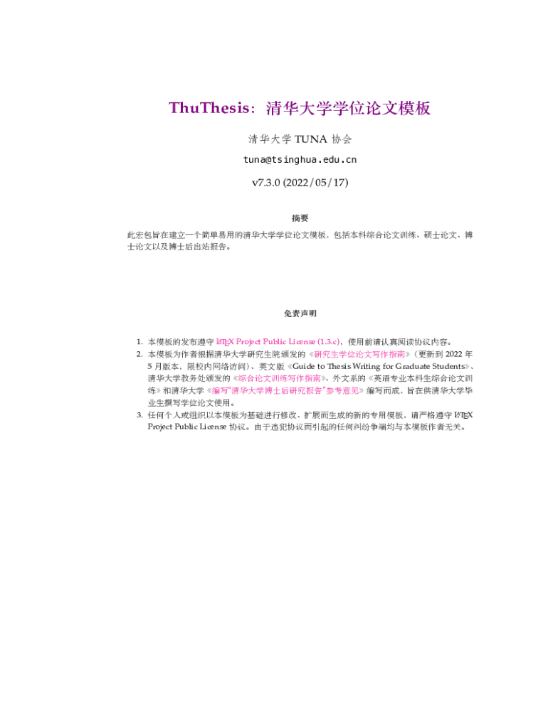 Synthesis TUNA tuna@tsinghua.edu.cnv7.3.0 (2022/05/17) 1. LATEX Project Public License (1.3.c) 2.