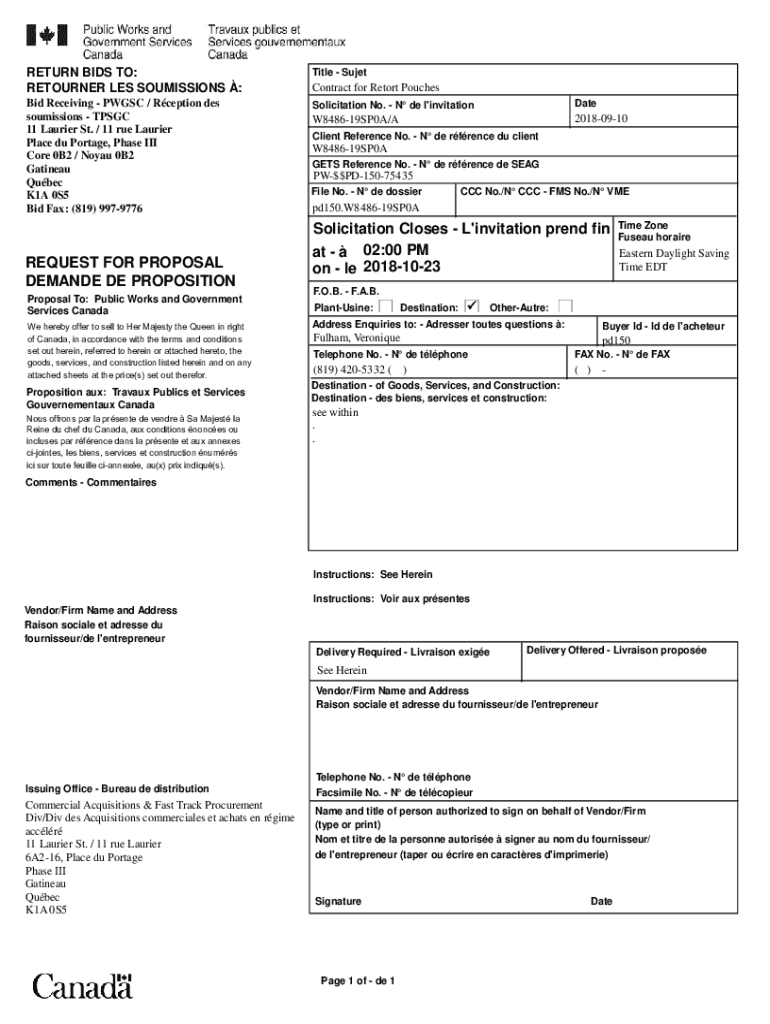 Get the free buyandsell.gc.ca cds publicRETURN BIDS TO: Title - Sujet Contract for Retort Pouches...