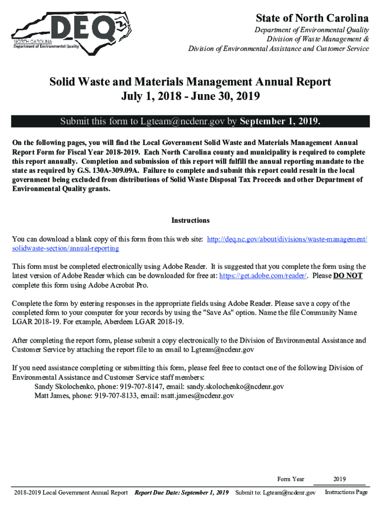 State of North Carolina Department of Environmental Quality Division of Waste Management & Division of Environmental Assistance and Customer ServiceSolid Waste and Materials Management Annual Report