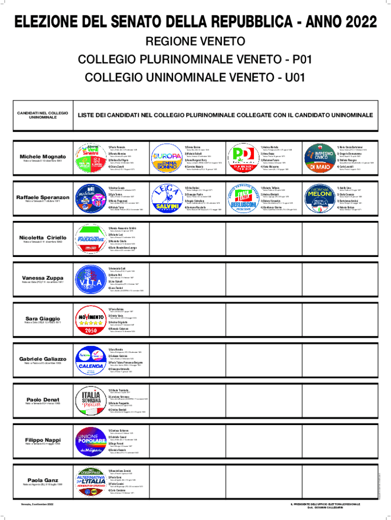 ELEZIONE DEL SENATO DELLA REPUBBLICA ANNO 2022 REGIONE VENETO COLLEGIO PLURINOMINALE VENETO P01 COLLEGIO UNINOMINALE VENETO U01 CANDIDATI NEL COLLEGIO UNINOMINALELISTE DEI CANDIDATI NEL COLLEGIO PLURINOMINALE