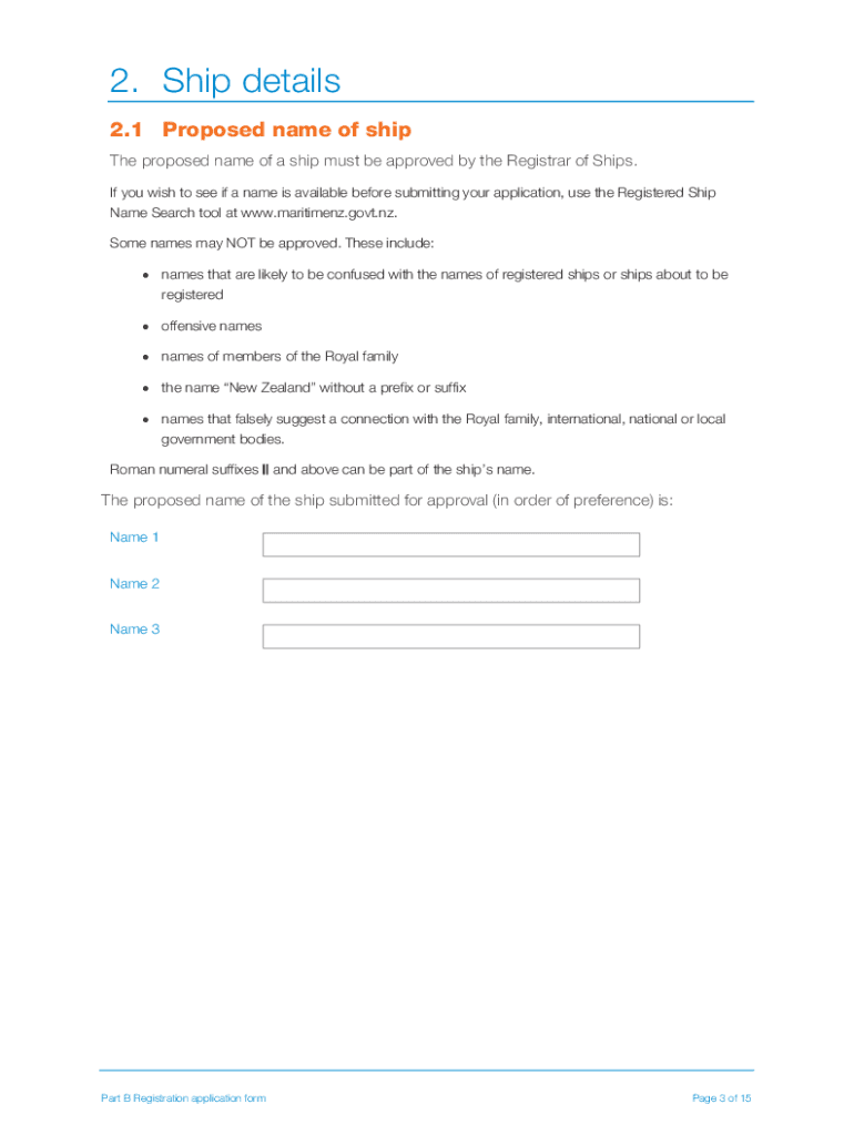 Part B Registration Application (SR3) Last updated: July 2019About this form Use this form to apply to register a ship in Part B of the New Zealand Register of Ships. This application meets the legal