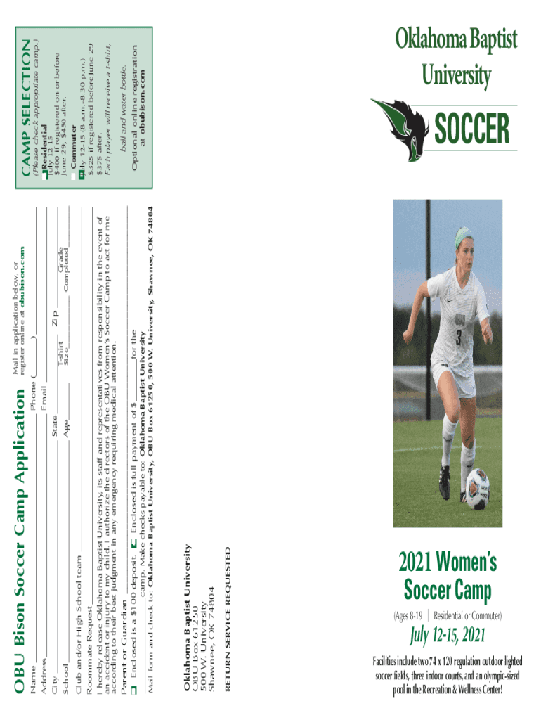 Mail in application below, or register online at Orbison. Return SERVICE REQUESTED Oklahoma Baptist University OSU Box 61250 500 W. University Shawnee, OK 74804Mail form and check to: Oklahoma Baptist