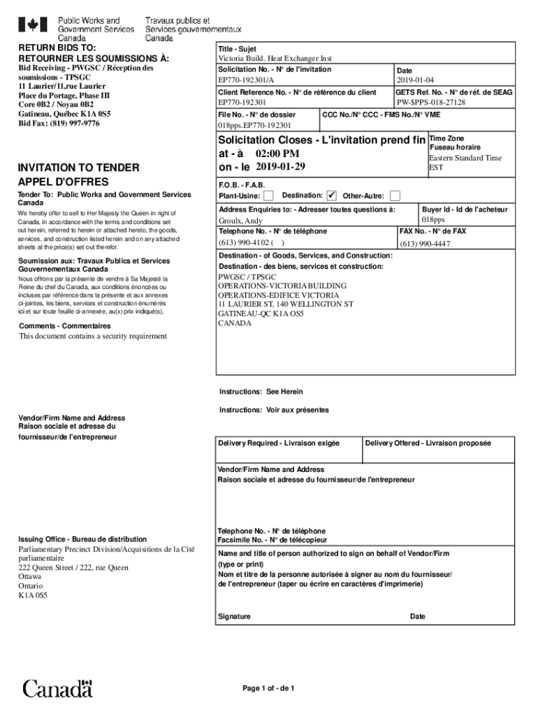 Get the free buyandsell.gc.ca cds publicRETURN BIDS TO: Title - Sujet Victoria Build. Heat Exchan...