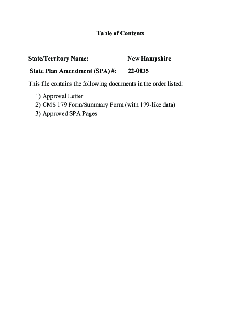 Get the free New Hampshire State Plan Amendment (SPA) #: 22-0035 This file ...