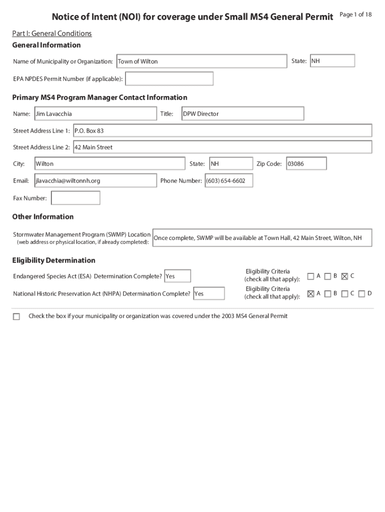 Get the free Notice of Intent (NOI) for coverage under Small MS4 General Permit for Wilton, NH. N...
