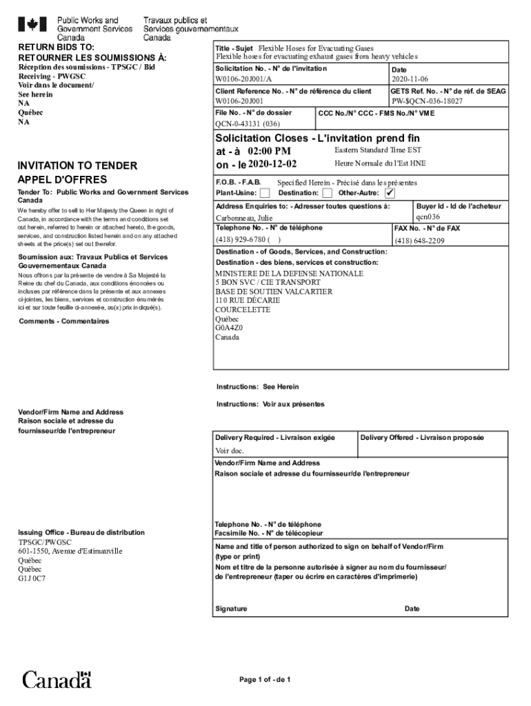 Get the free buyandsell.gc.ca cds publicRETURN BIDS TO: Title - Sujet Flexible Hoses for Evacuati...