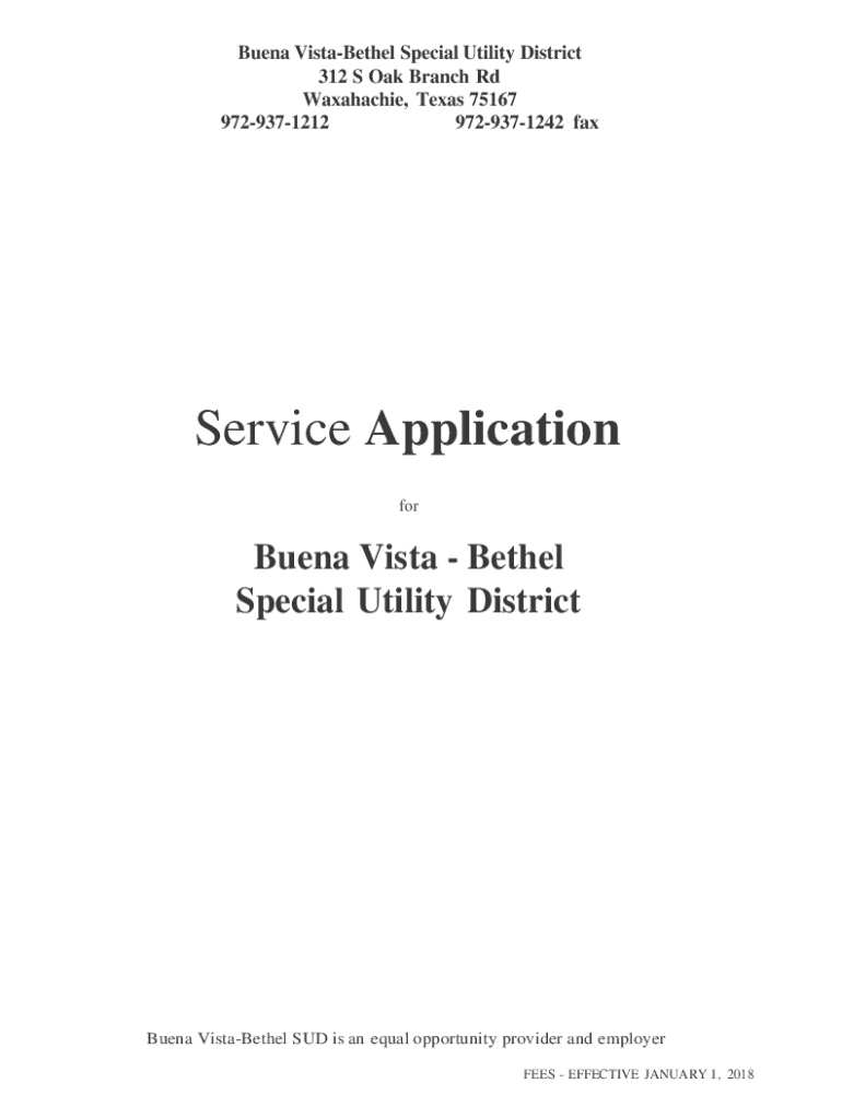 Buena VistaBethel Special Utility District 312 S Oak Branch Rd Waxahachie, Texas 75167 9729371212 9729371242 service Application Fortuna Vista Ethel Special Utility DistrictBuena VistaBethel SUD is