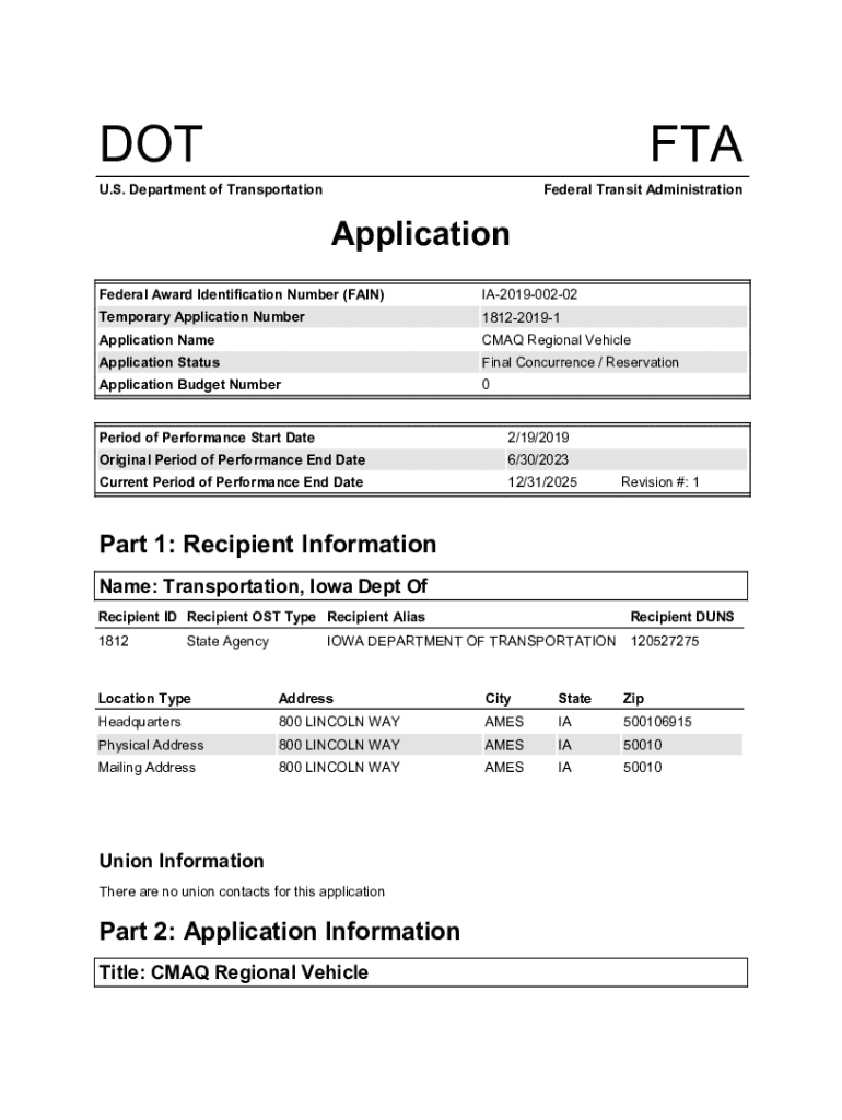 DOTTED. S. Department of Transportation Federal Transit AdministrationApplication