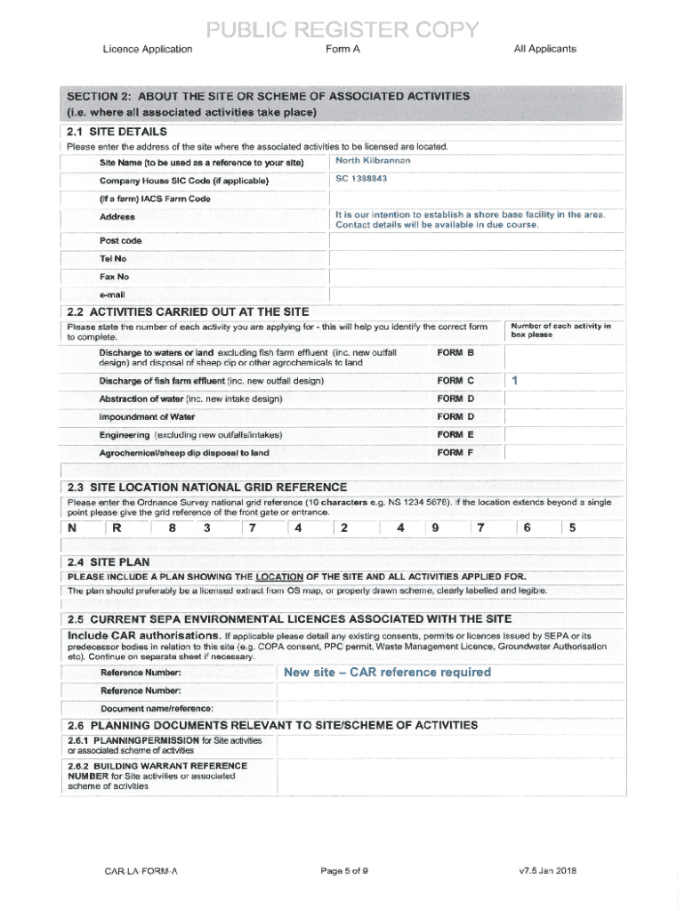 Form License ApplicationSECTION 2:All ApplicantsABOUT THE SITE OR SCHEME OF ASSOCIATED Activities. e. where all associated activities take place) 2. 1SITE DETAILSPlease enter the address of the site