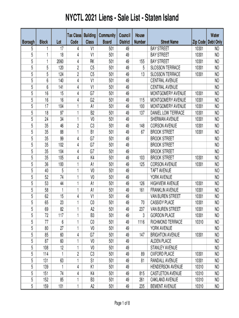 NYC TL 2021 Liens Sale List Staten Island Borough 5 5 5 5 5 5 5 5 5 5 5 5 5 5 5 5 5 5 5 5 5 5 5 5 5 5 5 5 5 5 5 5 5 5 5 5 5 5Block 1 1 1 5 5 6 6 16 16 17 18 24 35 35 35 35 35 35 36 40 52 53 58 62