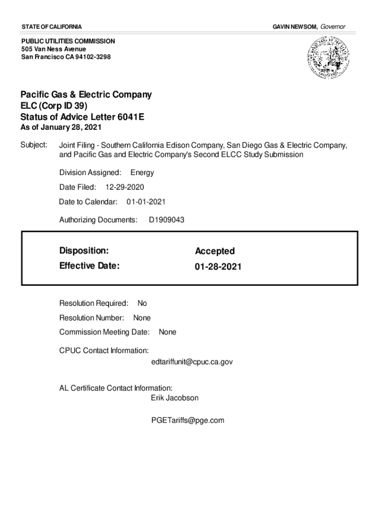 Status of Advice Letter 6041E