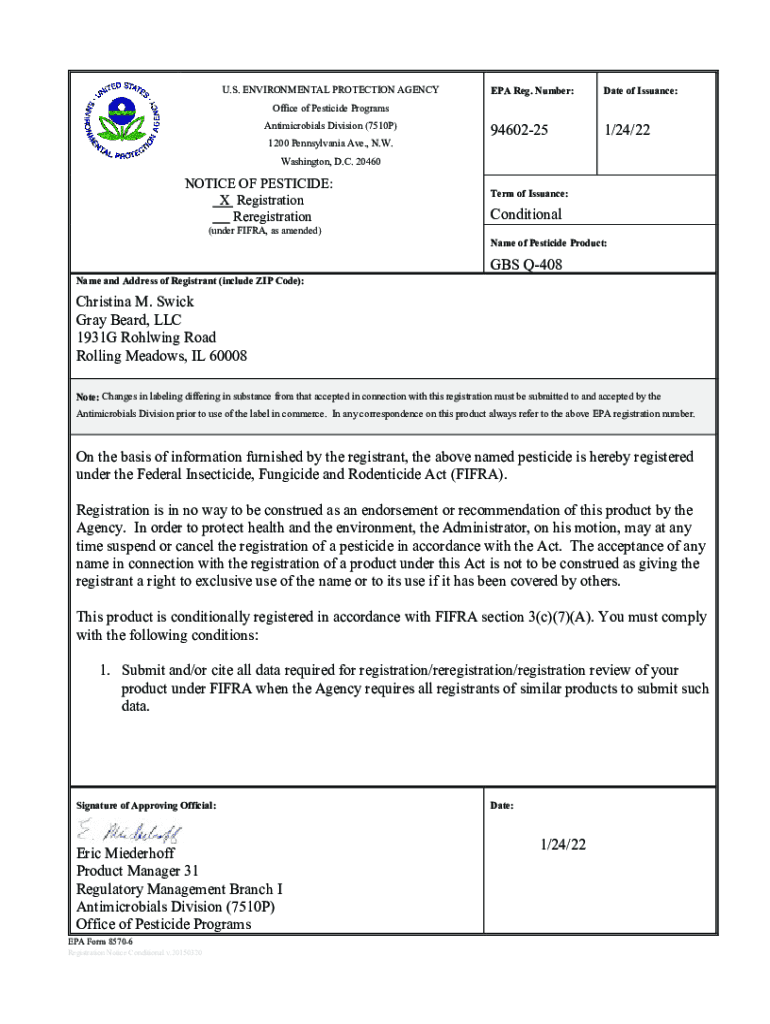 Get the free US EPA, Pesticide Product Label, GBS Q-408,01/24/2022. Pesticide Product Label, GBS ...