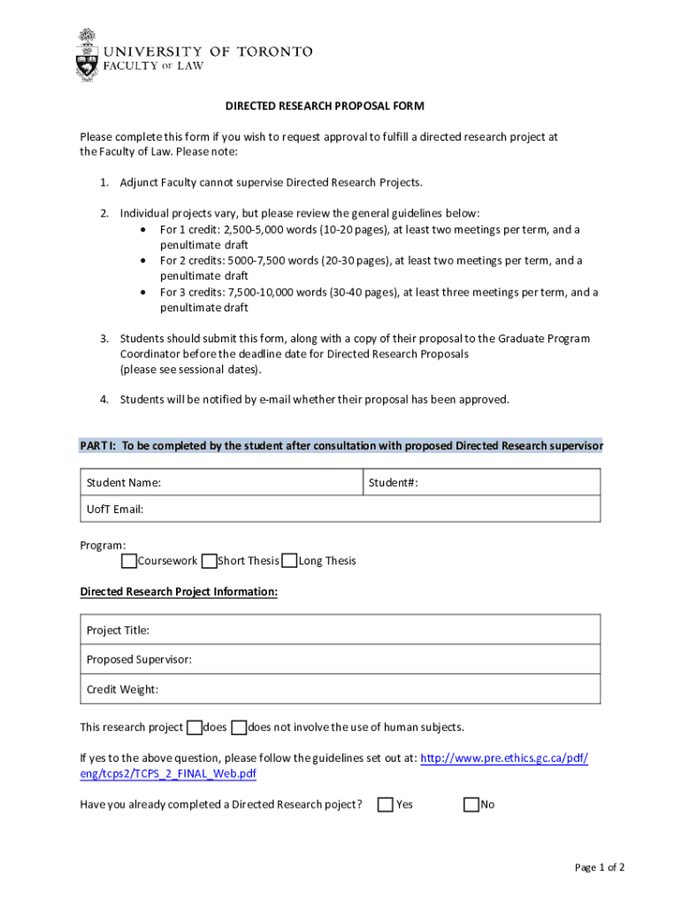 Get the free DIRECTED RESEARCH PROPOSAL FORM - University of Toronto Faculty of Law