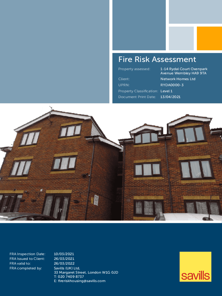 Fire Risk Assessment Property assessed:114 Real Court Oxen park Avenue Wembley HA9 9TAClient:Network Homes Turn:RYDA00003Property Classification: Level 1 Document Print Date:FRA Inspection Date: FRA