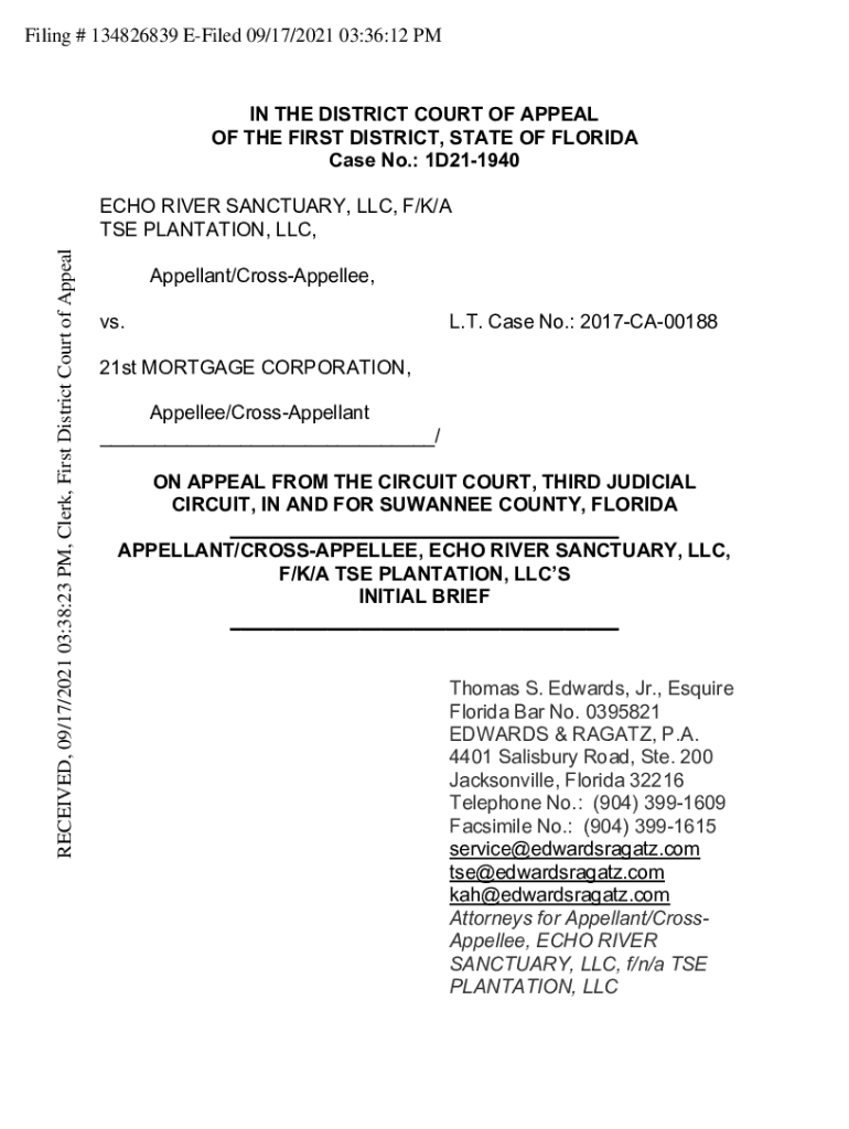 Filing # 134826839 Filed 09/17/2021 03:36:12 PAIN THE DISTRICT COURT OF APPEAL OF THE FIRST DISTRICT, STATE OF FLORIDA Case No.: 1D211940RECEIVED, 09/17/2021 03:38:23 PM, Clerk, First District Court
